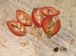 Chiamate tecnicamente cinorrodi, le bacche della rosa canina sono rosse, oblunghe e di circa 0,5 cm di dimensione. Questi frutti sono apprezzati per il loro elevato contenuto di vitamina C, oltre alle loro proprietà astringenti e diuretiche. In alcune regioni d’Italia, le bacche sono affettuosamente chiamate “grattaculi” o “grattacul” poiché i peli all’interno delle bacche sono irritanti se vengono vengono toccati.
